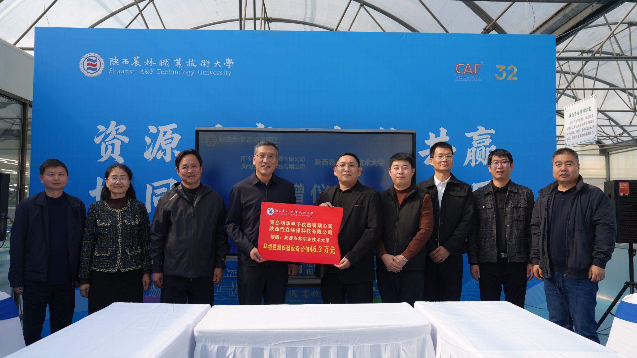 10月28日,生态环境工程学院在“农高会会客厅”举行企业捐赠仪式。学校党委书记韩明军出席仪式,青岛明华电子仪器有限公司陕西业务部总经理王伦昌、陕西垚森环保科技有限公司总经理南圣毅,以及生态环境工程学院党总支书记孙承俊、院长王青宁、副院长周伟等参加活动。