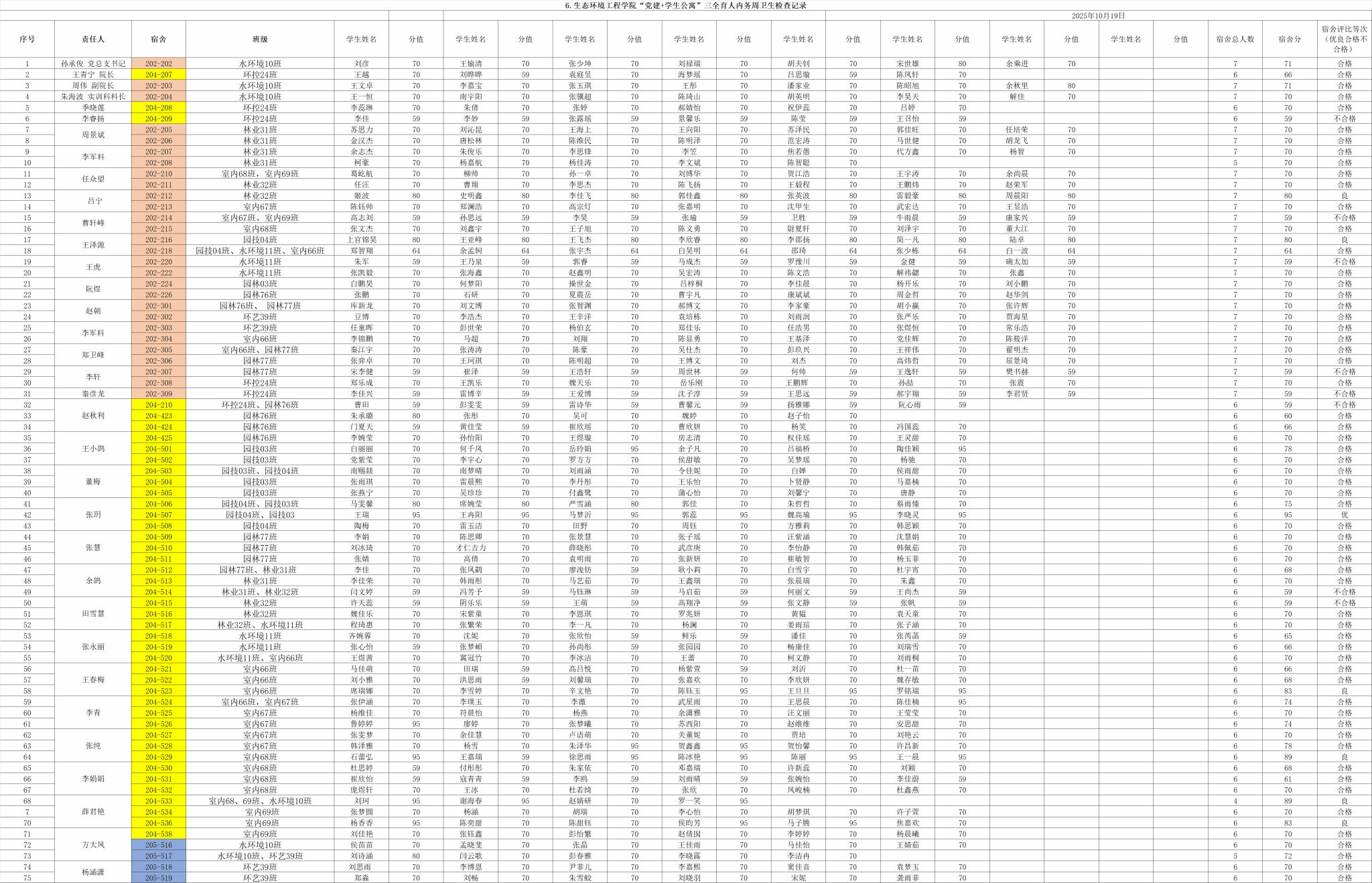 党建+学生公寓三全育人工程之内务卫生通报2025-2026学年第一学期(5)