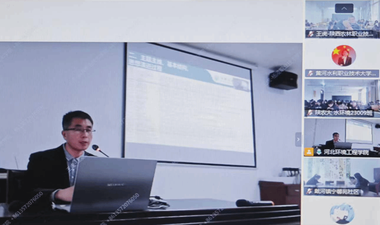 2025年10月23日下午,陕西农林职业技术大学生态环境工程学院环境工程党支部联合河北环境工程学院、黄河水利职业技术大学等十余家兄弟单位的环境类专业党团员,于北控水务学院党建联盟平台开展《习近平谈治国理政》(第五卷)专题学习活动。河北环境工程学院马克思主义教学部主任刘明教授围绕共同体、文明新形态、党的自我革命内在逻辑关系等核心要义进行系统阐释。全体与会同志一致表示,要深入学习贯彻习近平新时代中国特色社会主义思想,深刻领会"两个确立"的决定性意义,切实增强"四个意识"、坚定"四个自信"、做到"两个维护",为实现党的二十大战略目标贡献力量。会议强调,要立足职业教育阵地,着力培养生态环境保护高素质技术技能人才,为推进中华民族永续发展、实现生态文明建设目标作出更大贡献。