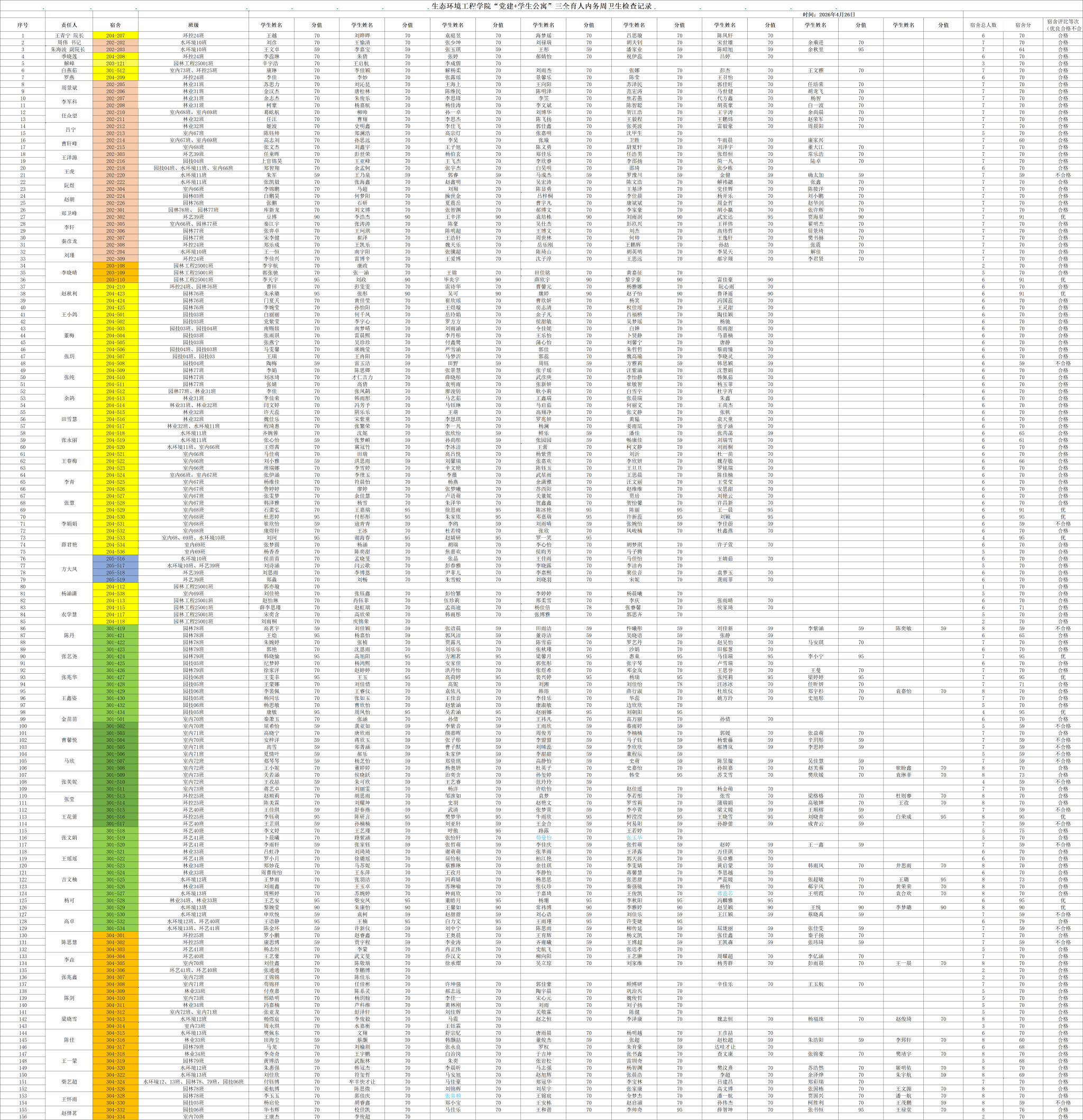 党建+学生公寓三全育人工程之内务卫生通报2025-2026学年第二学期(7)